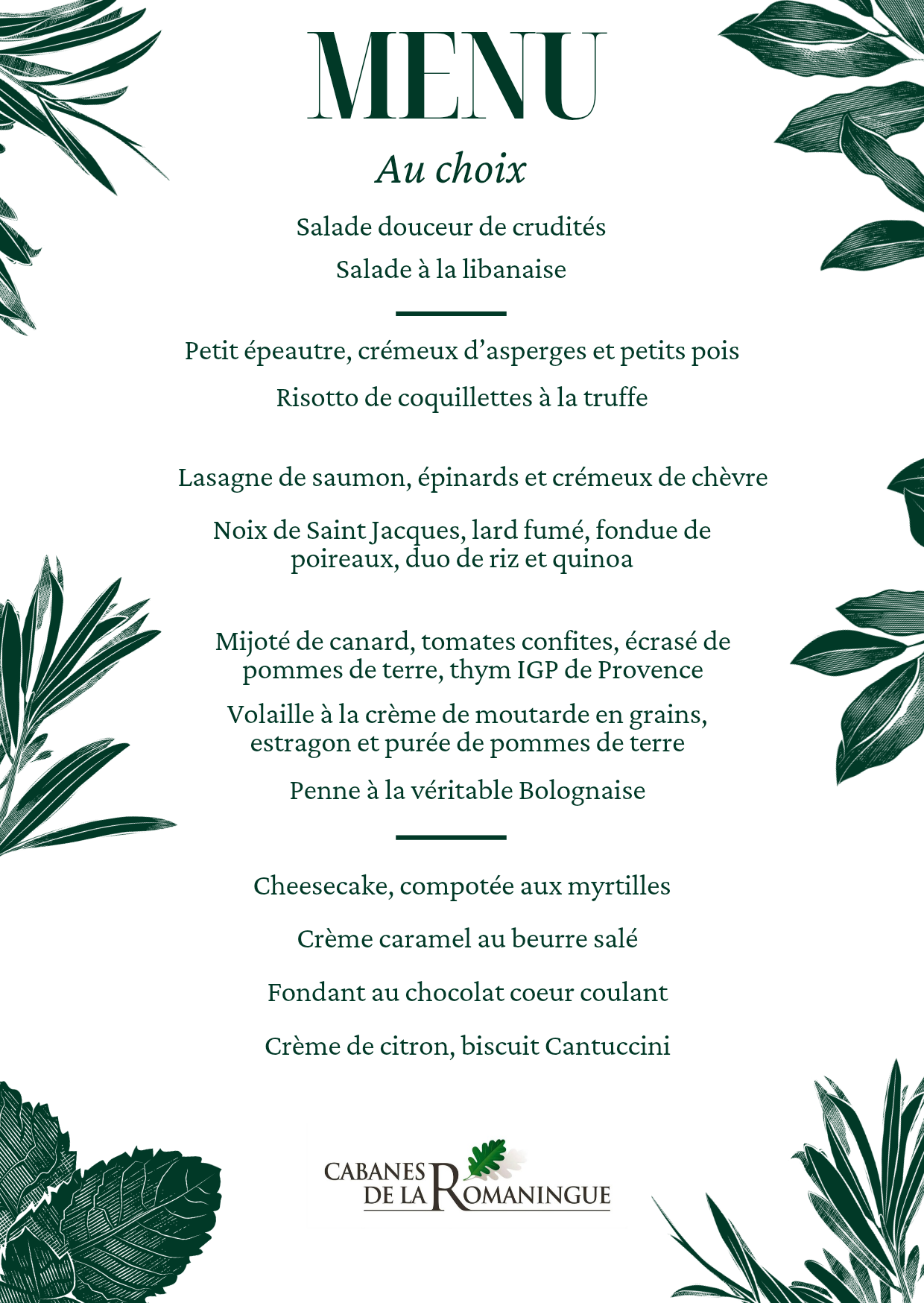 Composez votre dîner pour une personne à partir de la carte du moment, avec une entrée, un plat et un dessert pour un repas gourmand.